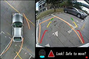 停車、泊車難就是不能掌握車身周圍情況,道可視這款360度全景行車輔助系統(tǒng)通過CCD攝像頭,在車載DVD上為車主呈現(xiàn)車身前后左右360度無死角的視頻演示,輕松掌握該往后或往側(cè)位前進(jìn)多少?方向盤該如何打。更顯示出倒車軌跡。